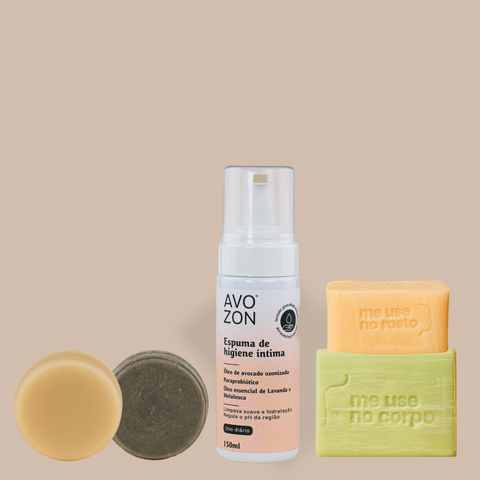 • Espuma de Higiene Íntima Avozon: limpeza delicada para a região íntima, respeitando o pH natural, prevenindo irritações e proporcionando frescor e conforto duradouro ao longo do dia.